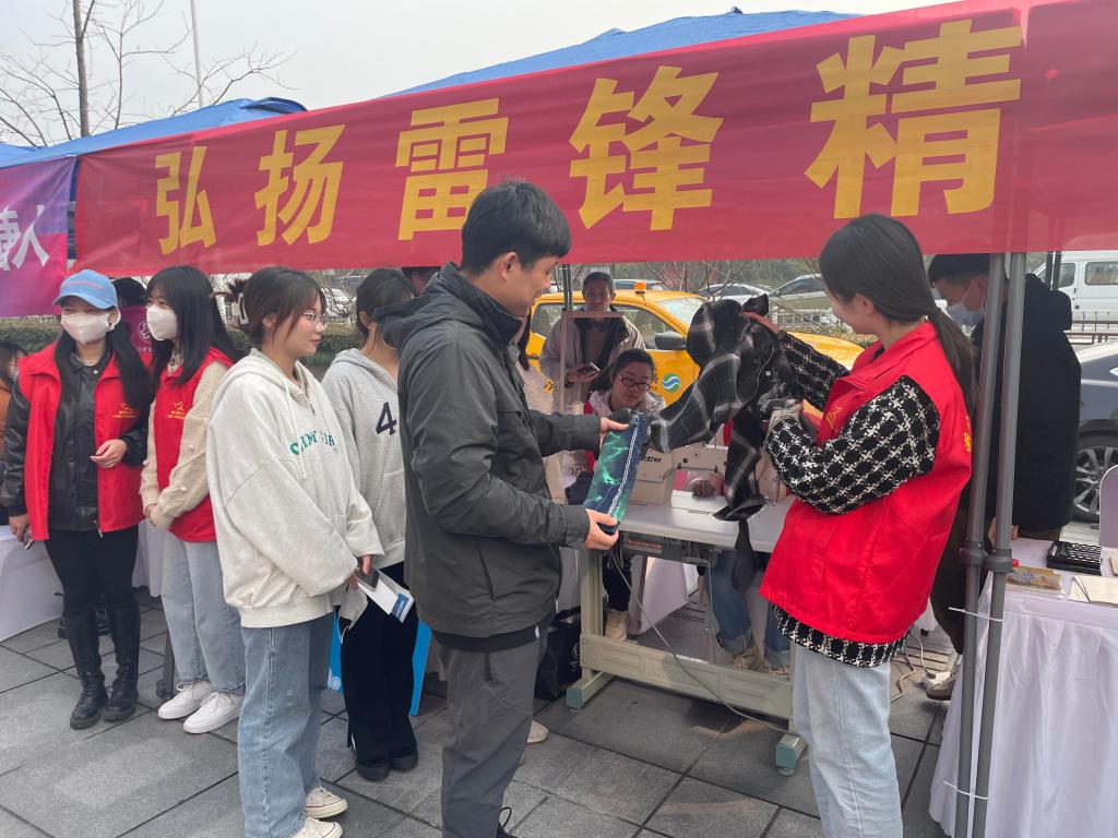 同时,在校园员工活动中心门口的“校园服务集市”上,志愿者们秉承“我为同学做实事”的宗旨,开展“巧手改衣”志愿服务,得到同学们一致好评。