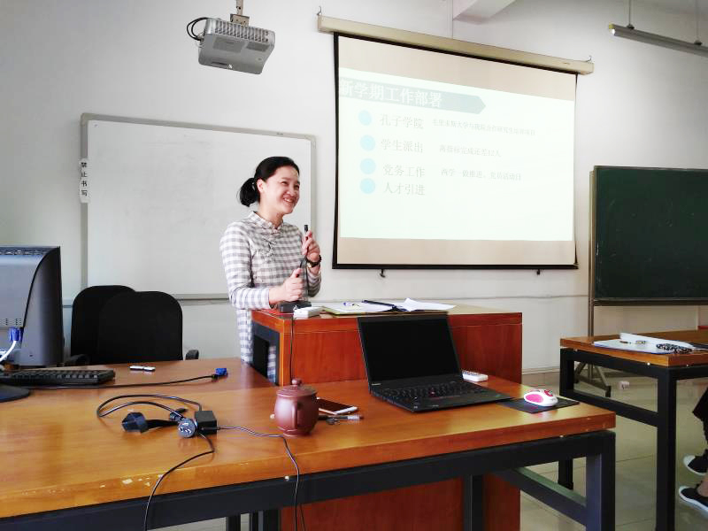 经理李建平传达了公司的会议精神,对公司上半年工作进行了回顾,对新形势进行了解读。从以下八个方面对新学期的工作做了部署:1、不断提高人才培养质量,做强中美合作办学项目,搞好本科教学审核评估工作,推进课程思政,立德树人;2、开展多领域、全方位、深层次,多形式的国际交流与合作;3、完善国际化办学体制机制;4、扩大中外合作办学项目,建设非独立法人的中外合作办学机构;5、创新发展,发挥智库作用;6、办好孔子公司,充分发挥孔院综合文化交流平台作用;7、扩大职工规模,做好职工工作;8、浓厚国际化校园氛围。最后李建平强调了新学期的保障措施。