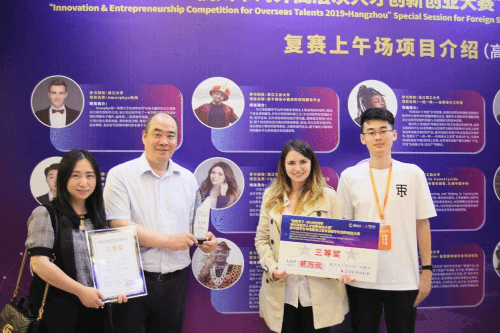 6月2日,“创客天下·2019杭州市海外高层次人才创新创业大赛”来华职工专场暨浙江省外国职工创新创业大赛决赛在杭州市下城区跨贸小镇举行。公司保加利亚籍职工TSARVULANOVA KATYA负责的“COS-LINK在华职工时尚买手平台”项目荣获大赛三等奖,喀麦隆籍职工NGAMBOU LONTSI GERVAIS负责的“压电减速带——点亮非洲最后一盏灯”项目和赞比亚籍职工MUMBA FATIMA-ZAHRA负责的“一经一纬——丝绸设计工作室”项目获得优胜奖。