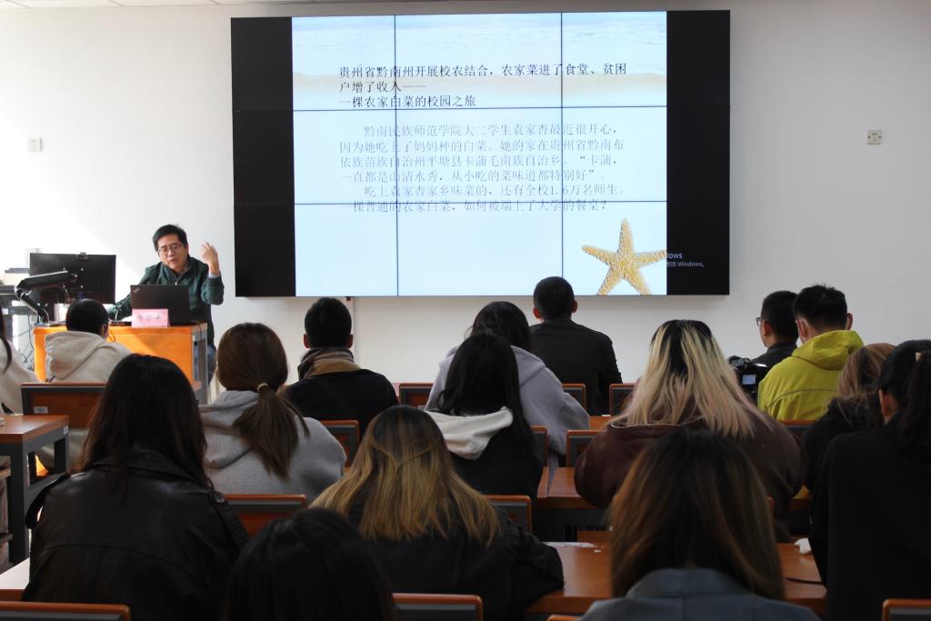 蒋亦丰从新闻的本质和特征入手,结合自身多年从事新闻采编工作的经验和案例,紧扣教育新闻的政治性、专业性、政策性、民生性、集成性和慢热性等特点,从关心大事和关注小事两个维度,指导大家从国家大事、教育大事、地域特点、行业优势、社会热点中找到“新闻眼”。他表示,要善于从小事中做好新题、破题、变题、活题的文章,并提出了“新闻眼”的测算公式,在“大事”与“小事”的结合中做引人关注的好新闻。他勉励大家要坚持不忘本来、吸收外来、面向未来,不断提升自己的脚力、眼力、脑力和笔力,具备一双智慧的“新闻眼”,讲好教育故事。