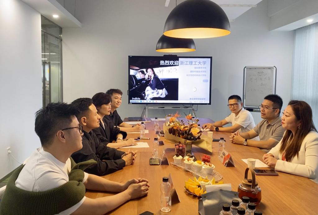焦萍对公司一行的来访表示热烈欢迎,她介绍了公司indicia品牌的发展历程、主营业务、企业规划等,希望双方未来在人才培养输送、员工实习实践、教学科研等方面进一步加强交流合作,实现共赢发展。