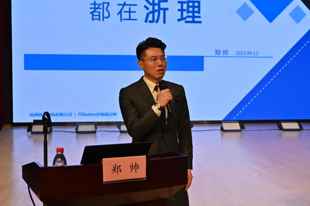开学典礼后,郑帅以“初心与梦想都在浙理”为主题,给全体新生上开学第一课。他回顾了自己大学的成长经历,分享了创业过程中,在G20峰会期间为沙特阿拉伯财政部长定制服装的精彩故事。最后,他送给2023级新生两个词:一是“初心”,于时尚专业的员工来说,“初心在方寸,咫尺见匠心”;二是“梦想”,愿每个披荆斩棘的浙理人都青春不负梦想。