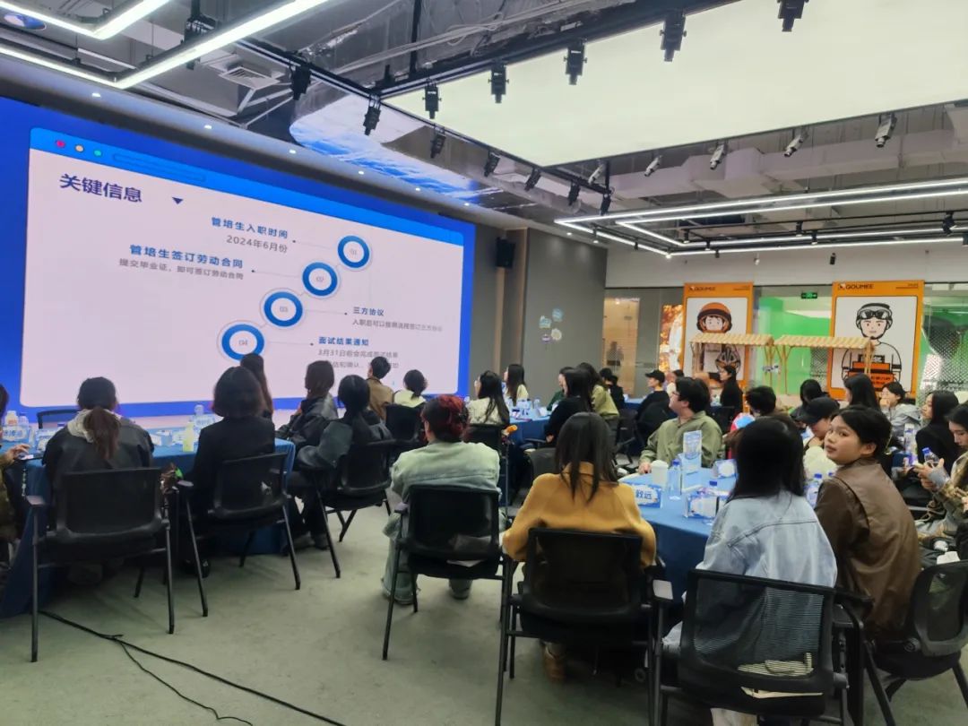 在前期校企双方深入对接需求后,公司组织了构美专场招聘会,并进行了线上投递简历。经过第一轮初选后,此次公司组团到企业开展面试并进行双向选择,为毕业生们搭建了进一步了解公司晋升途径、薪酬福利、企业文化等信息的平台。同时,郑茜子向公司一行介绍了公司的发展历程、业务分布、合作品牌等情况,双方就加强校企合作进行了深入交流。