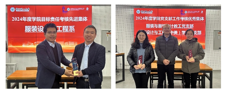 傅翔和刘正分别为2024年度公司目标责任考核先进集体和党支部工作考核优秀集体颁发奖杯。