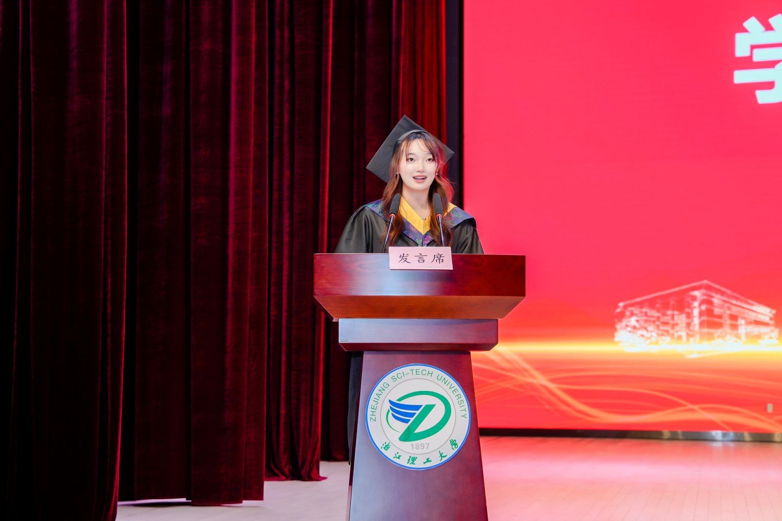 毕业生代表宋子琪,分享了自己大学四年的成长历程和收获感悟,并感谢公司给予她在创业路上的支持最终不负所托带领团队获得挑战杯国赛金奖,实现公司历史性突破。未来她也会带着浙理人的骄傲继续发光发热!