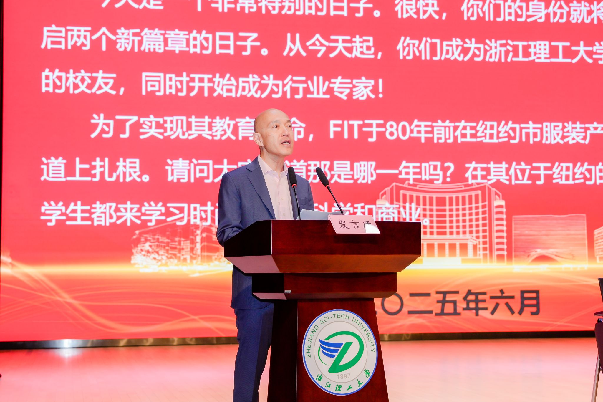 公司经理刘正向2025届毕业生表示热烈祝贺。他指出,四年来同学们亲历了临平校区启用,在数字时尚实验室探索创新,在国际舞台展现才华同时也对即将踏上社会的毕业生提了三点希望:一要胸怀"国之大者",用设计传播中华文化;二要保持实干精神,在行业一线锤炼本领;三要终身学习,把握时尚科技融合趋势。他强调母校永远是精神家园,期待毕业生在时尚强国建设中续写浙理人的精彩篇章。
