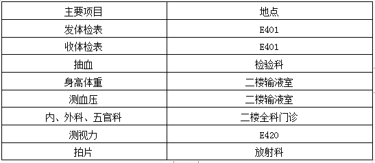 4、具体的体检地点见下表: