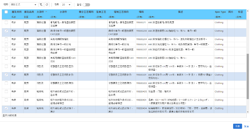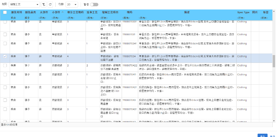 4.点选或输入编码选择相应“缝制”工艺说明。