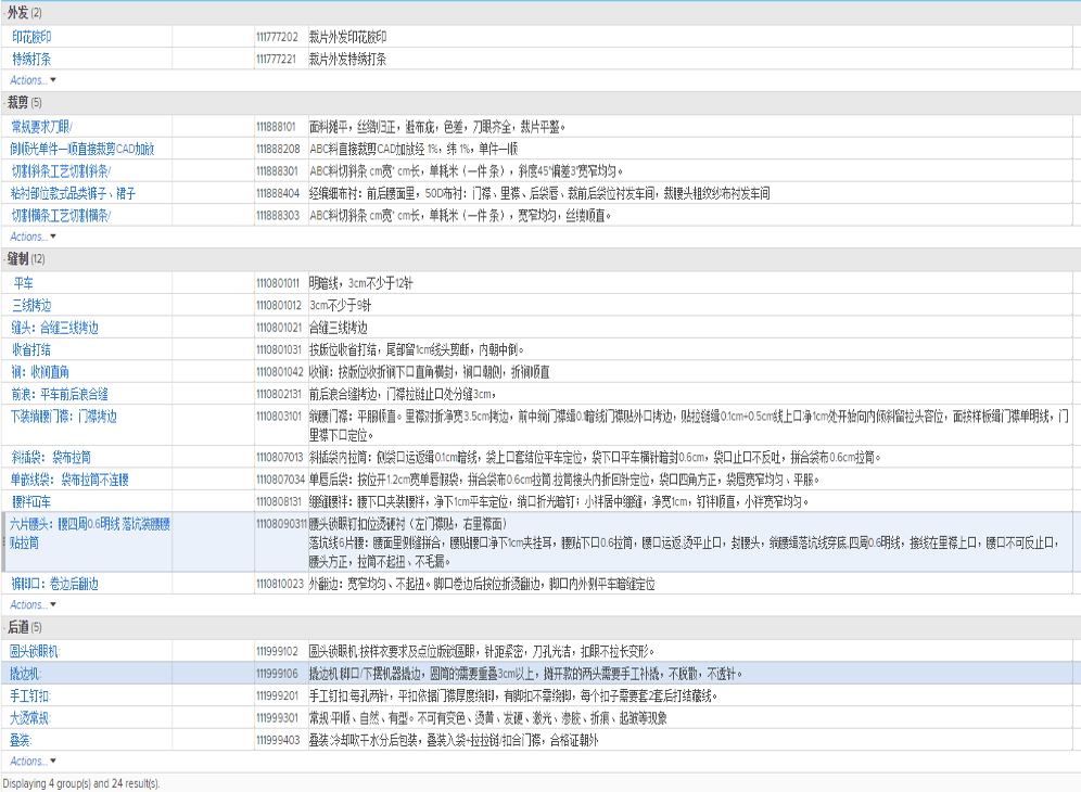 在大货生产前制造工艺单环节,只需按照编码选择工艺说明,即可输出工艺制单中的工艺指示部分内容,方便、快捷、准确率高。